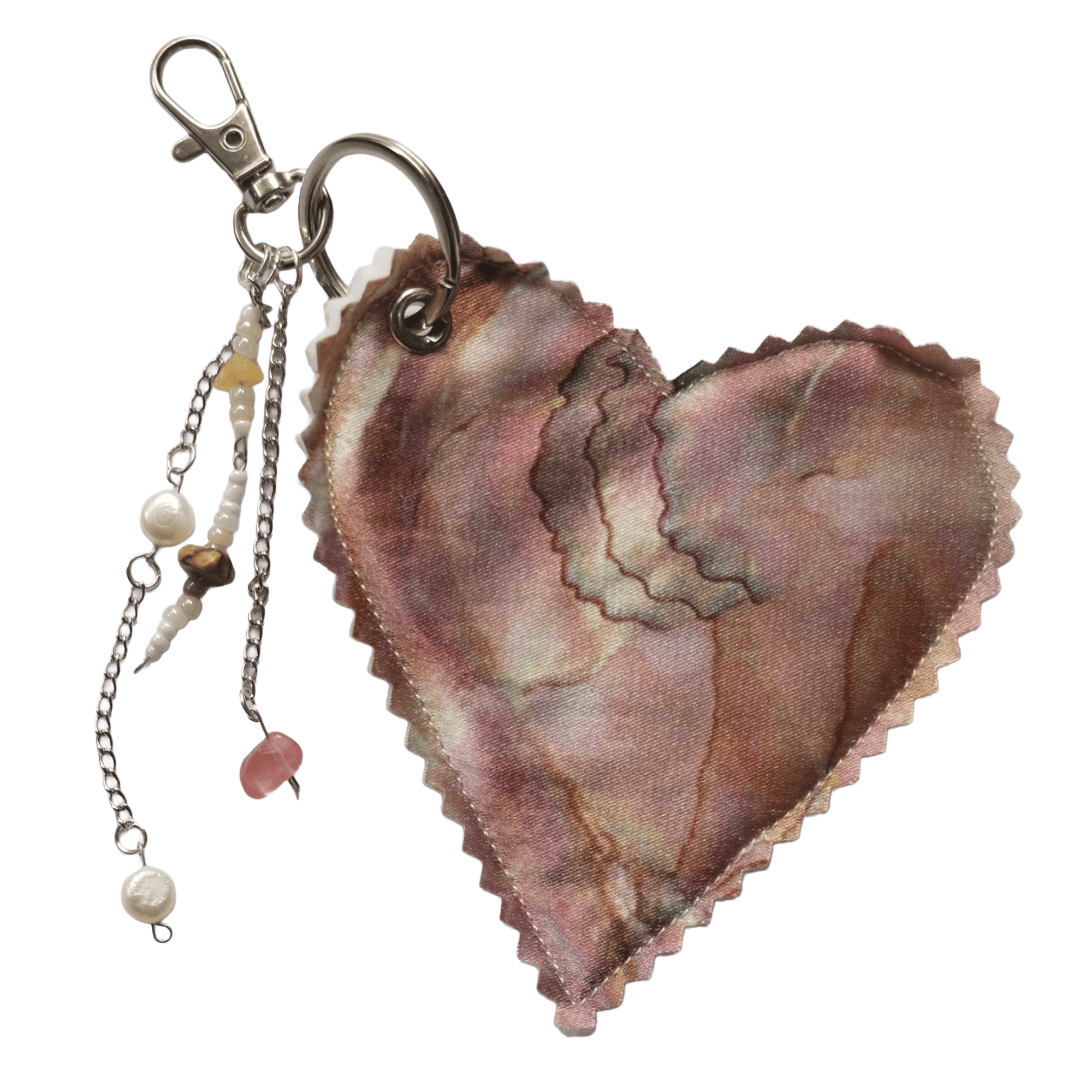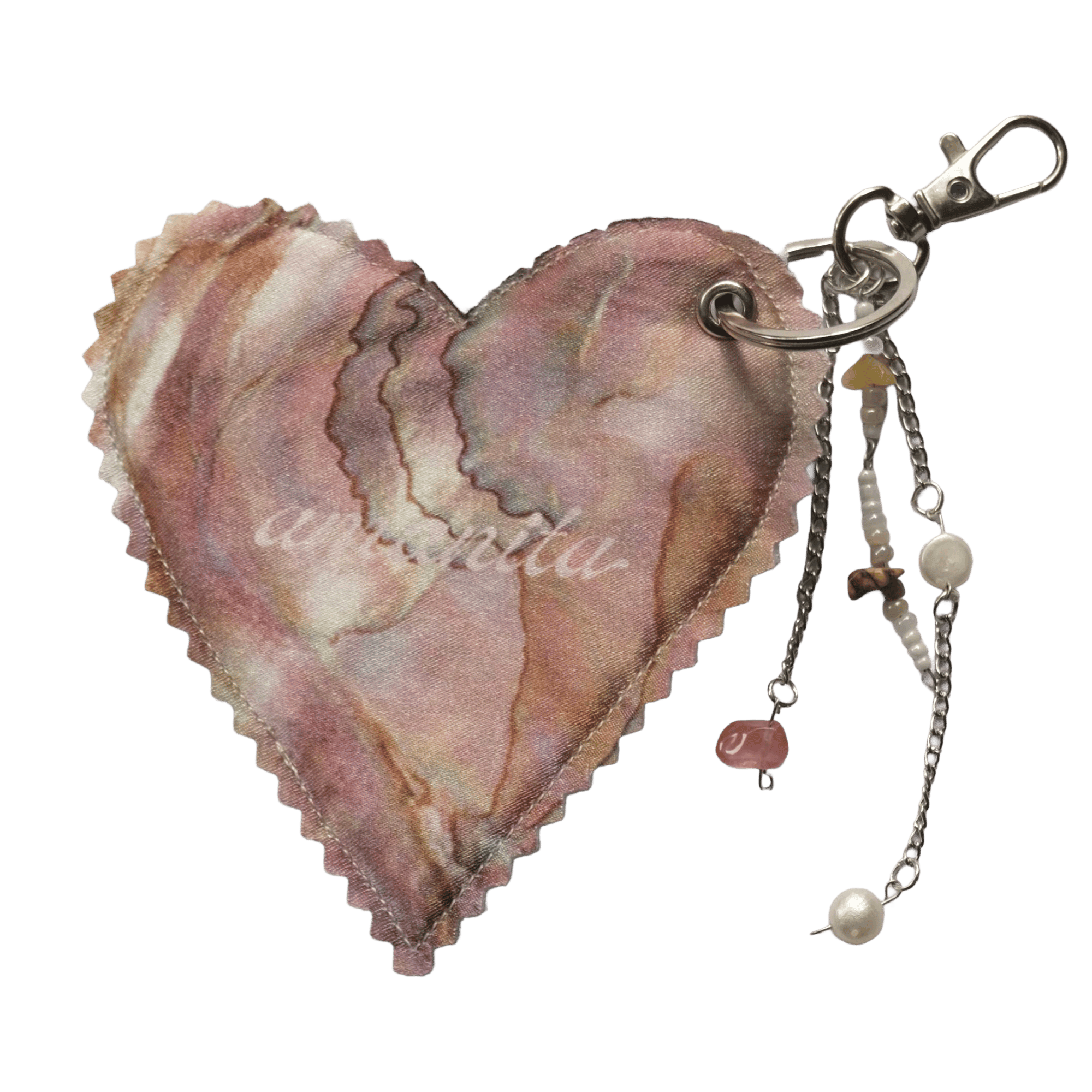shell print heart-shaped charm with cute danglys, the perfect addition to your bag or keys